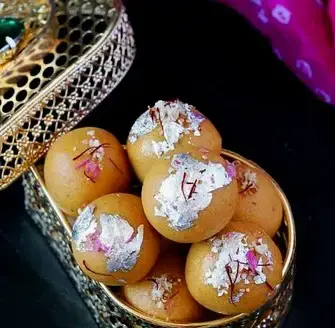 Magas Na Ladoo is a popular Indian sweet delicacy made from roasted chickpea flour (besan), ghee (clarified butter), sugar, and a touch of aromatic spices.